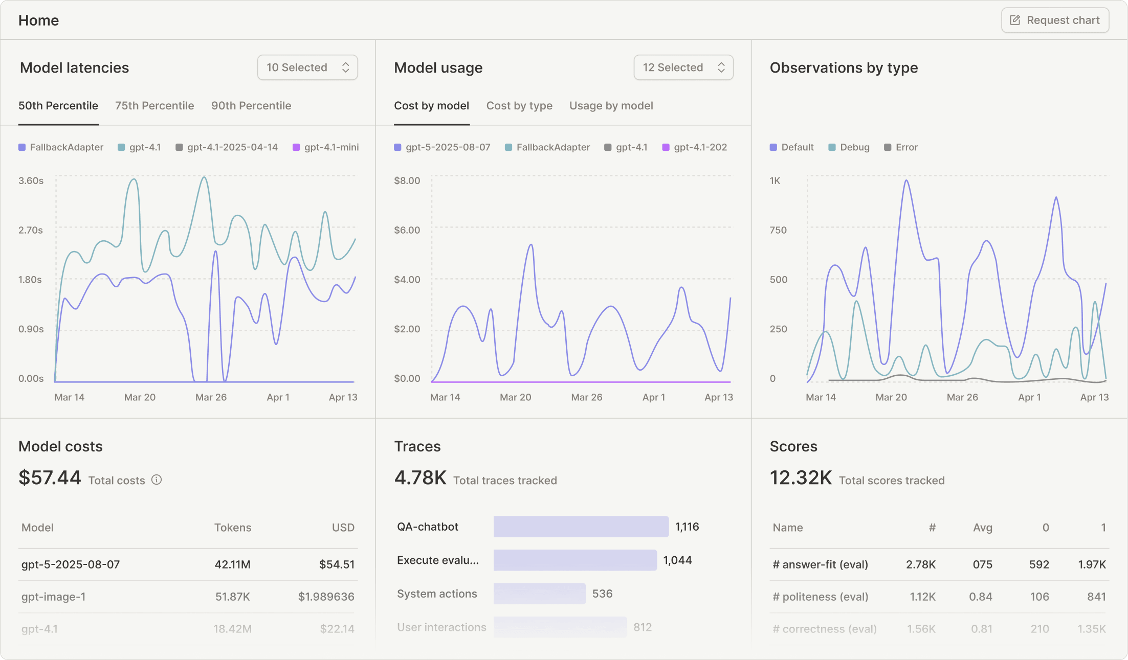 Monitor cost, latency, and quality with dashboards and automated alerts.
